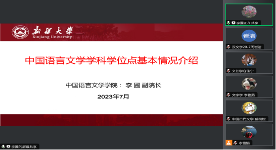 接着进行了我校招生宣传片的播放,不仅使营员们身临其境地了解学校和学院发展状况,更使同学们感受到了学校、学院浓厚的学风文化。紧接着,主持人李圃副院长向同学们讲述学院历史沿革,分别从新疆大学简介、学位点基本情况、师资队伍、学院硕博士研究生概况、培养目标、各二级学科培养方向与特色六个方面介绍了学校、学院详细情况。